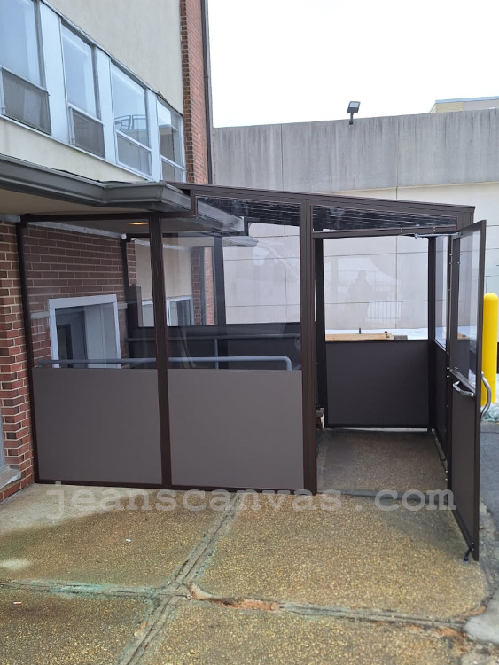 Our years of experience in custom fabrication enable us to provide our customers with unparalleled levels of quality and satisfaction. Our custom made canvas vestibules offer protection from the elements in the most inclement weather conditions, and they offer a clean, finished look. A vestibule from Jean’s Canvas Products offers you the protection of a permanent addition, while giving you the flexibility that only a temporary structure can offer. As a temporary structure, your custom vestibule will most likely not require a permit to install. They are also easy to assemble and to disassemble, so you can use it seasonally, and store it away when the weather gets warmer. Our custom vestibules can be installed by our expert technicians, or they can be built to your specs, and shipped out for a DIY installation. Call today for a quote on a custom fabricated canvas vestibule from Jean’s Canvas Products, where we have been building our customers’ dreams for over 35 years.